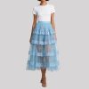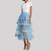 Women Summer Fashionable High Waist A-line Ruffle Mesh Skirts