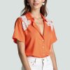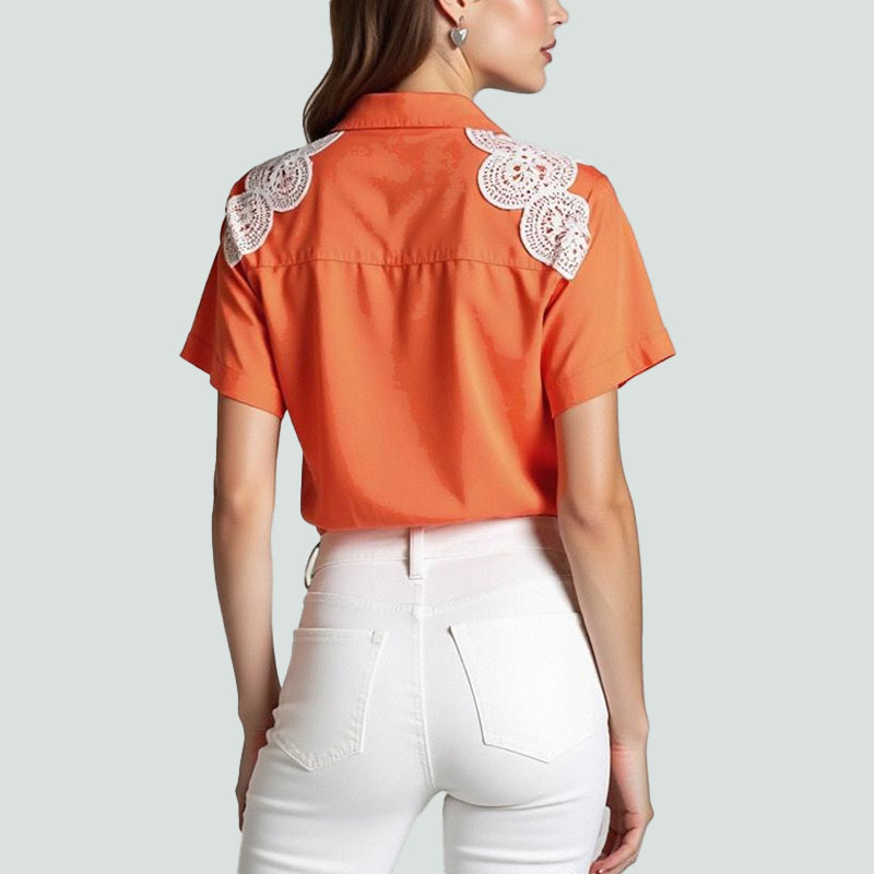 Moderate hem length, lapel collar, short sleeves. The women’s shirt is comfortable and beautiful, while the design is simple and fashionable.