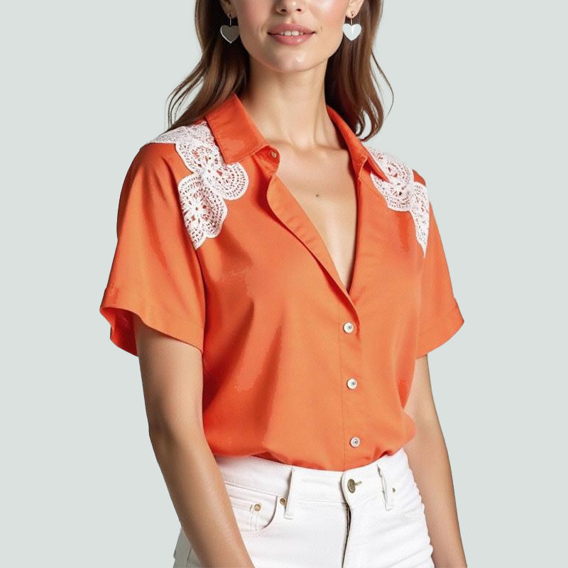 Made of soft, cool, skin-friendly and comfortable chiffon fabric, the women’s short-sleeved shirt is a wardrobe essential for spring, summer and holiday days.