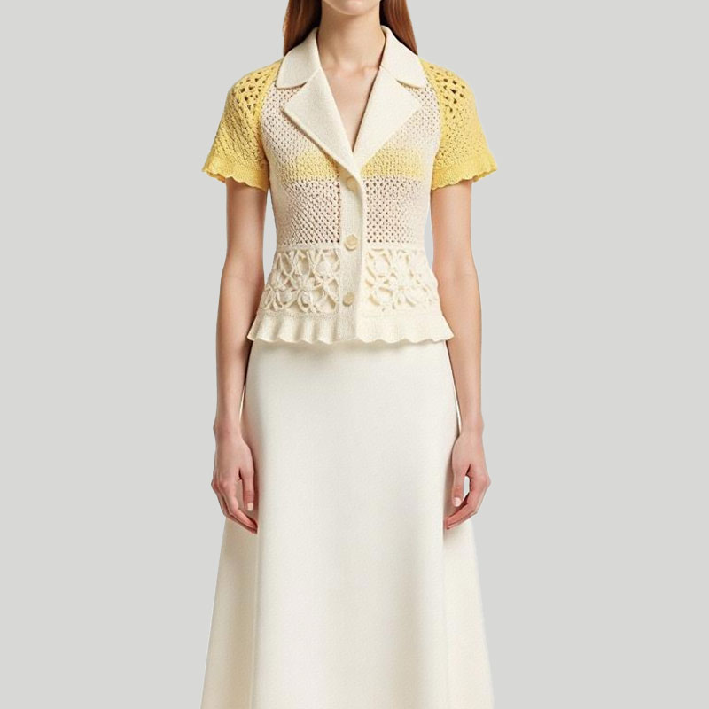 This women’s knitted short-sleeved top is the perfect combination of fashion and practicality with its exquisite design and comfortable material.