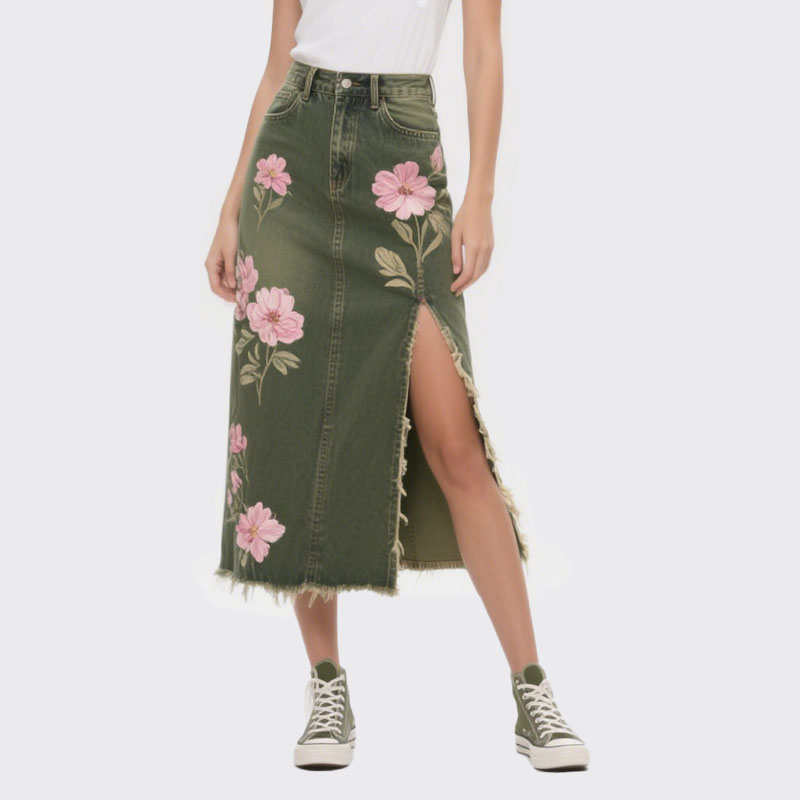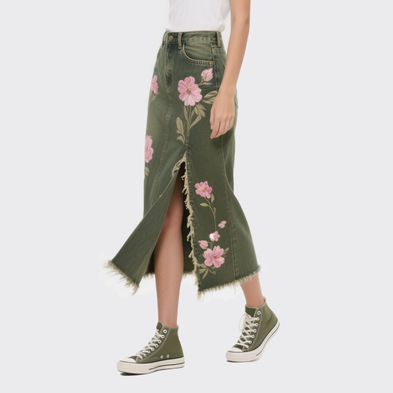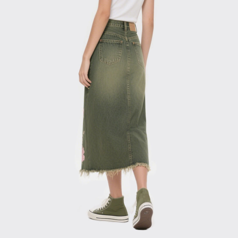 Women’s Casual A-Line High Waist Long Denim Jean Skirt