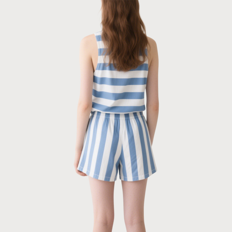 Elevate your relaxed style with our timeless striped lounge set, designed for effortless comfort and versatility. Perfect for cozy weekends, seaside getaways, or casual outings, this versatile two-piece ensemble combines classic maritime charm with modern simplicity.