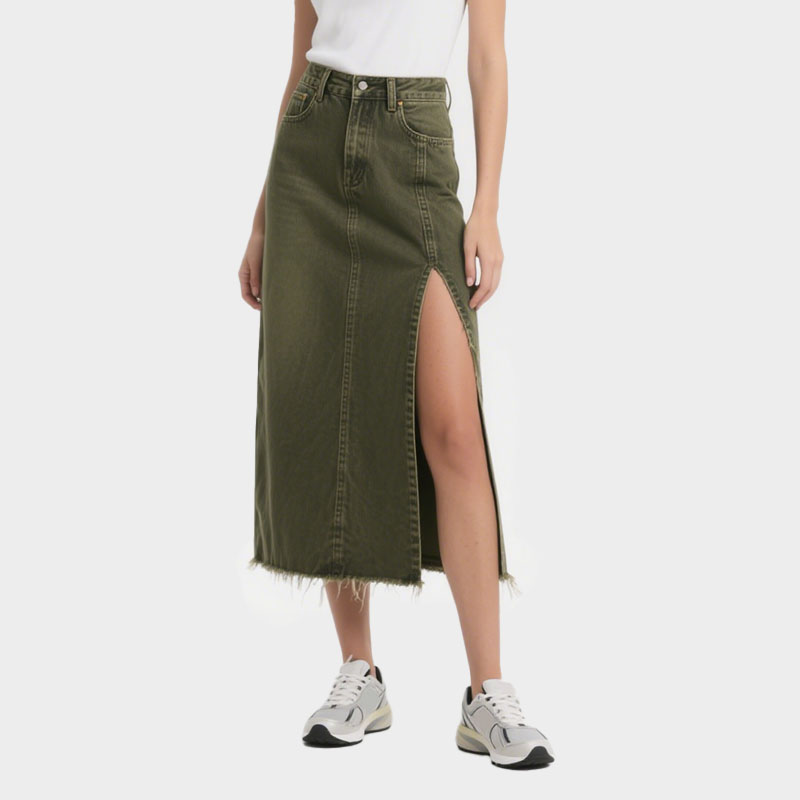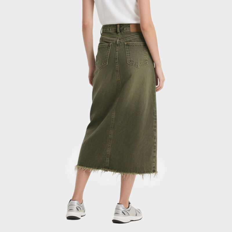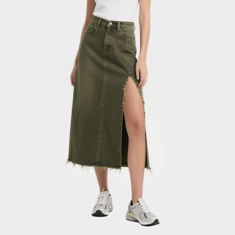 Women’s Denim Skirt Washed Jean High Waisted Denim Mid Skirt