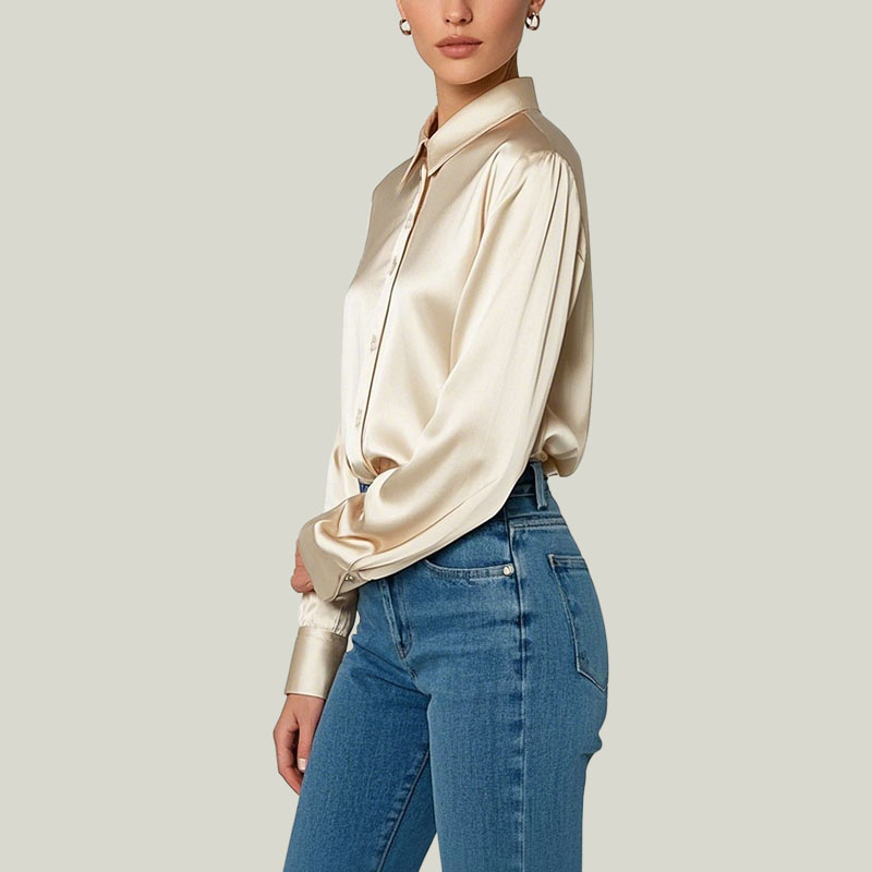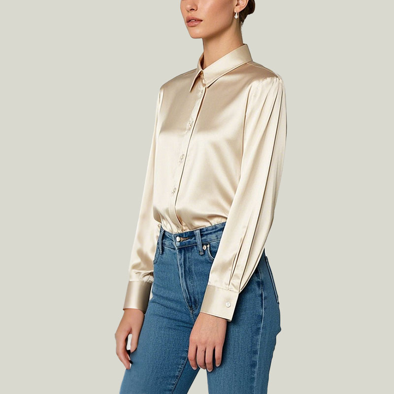 The shirt is elegant and casual, easy to care for; it can be hand washed or machine washed, gentle wash, hang dry, do not bleach.