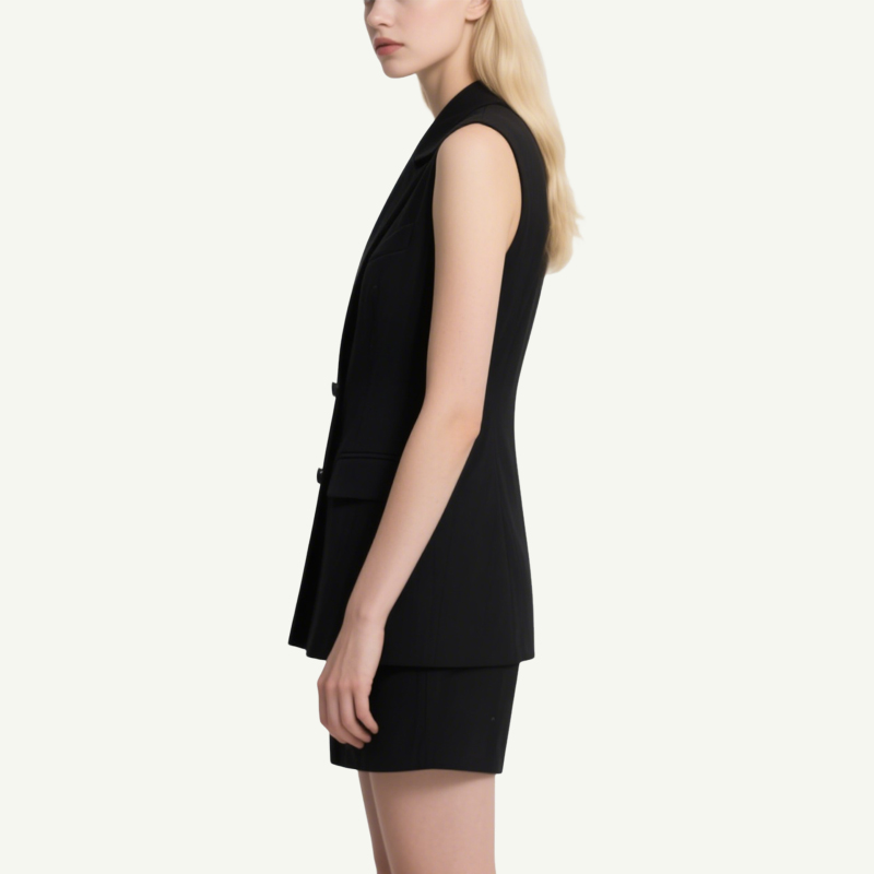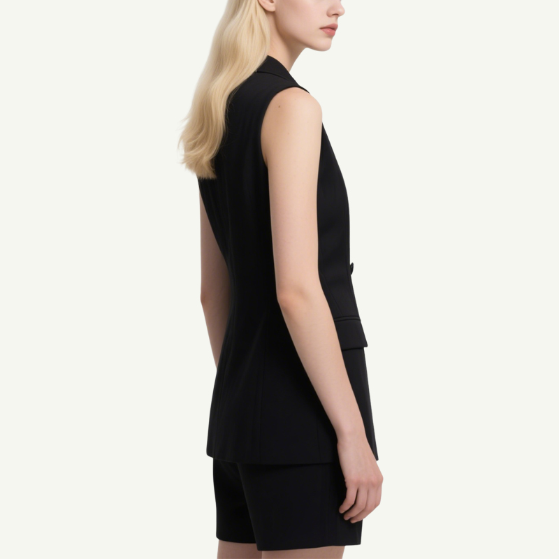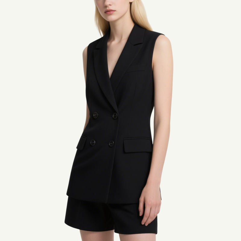Matching Shorts: Crisp, high-waisted shorts in the same polished cut, ensuring cohesive sophistication.