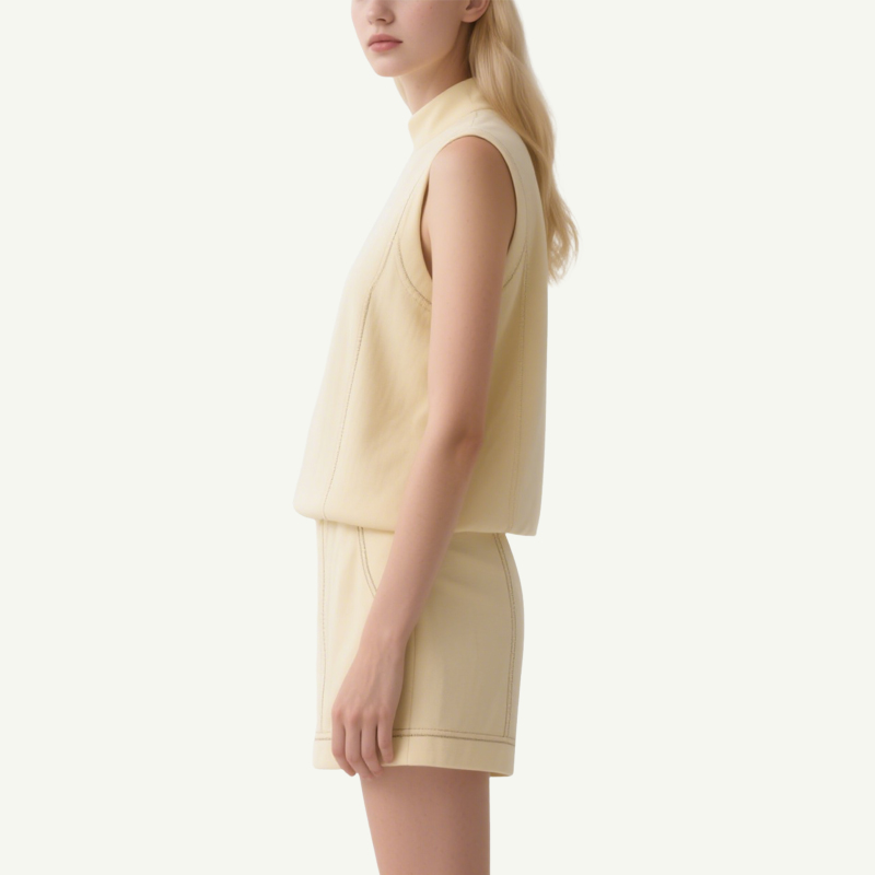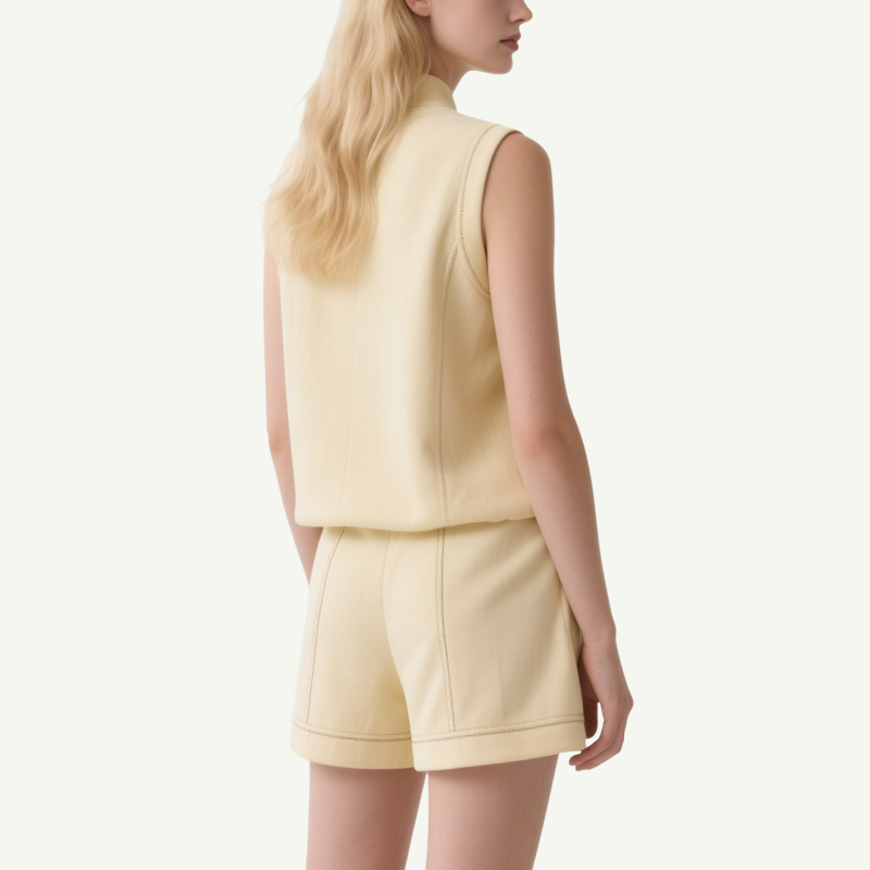 Elevate your summer wardrobe with our premium cropped tank top and shorts set, crafted for comfort and style. Designed in a soothing soft cream hue, this versatile two-piece features clean lines and modern silhouettes perfect for relaxed or dressed-up occasions.