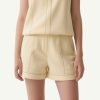 Shorts: Relaxed mid-rise fit with wide-leg tapered cuffs. Functional side pockets and internal drawstring ensure practical comfort.