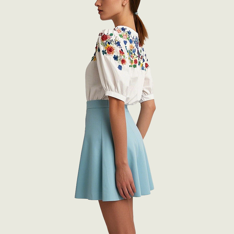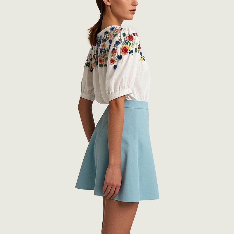 Cute tops for women in spring and summer, floral embroidery, elegant going out tops.