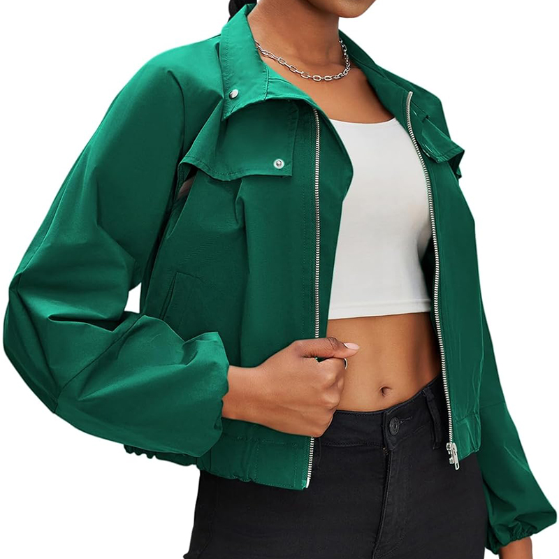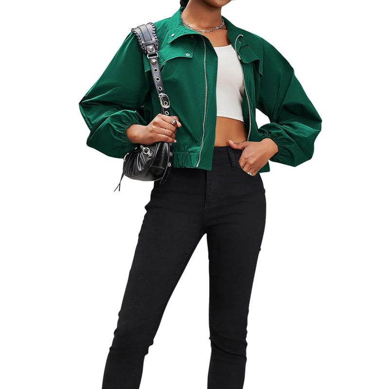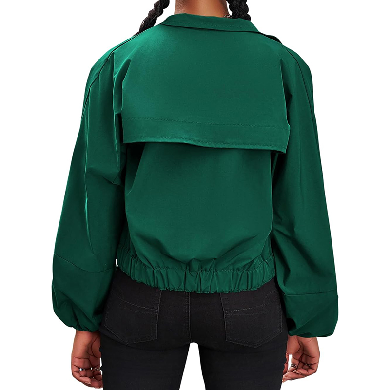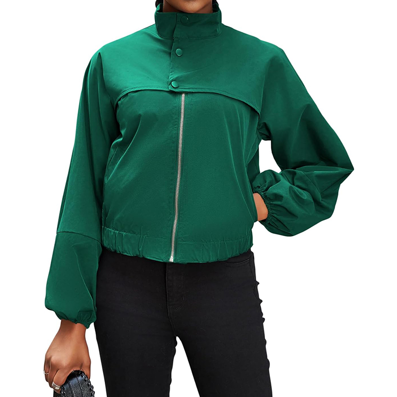 Features: This women’s jacket adopts solid color, lapel, dropped shoulders, button closure, elastic cuffs, and short design, making the wearer more casual and fashionable.
