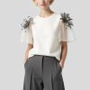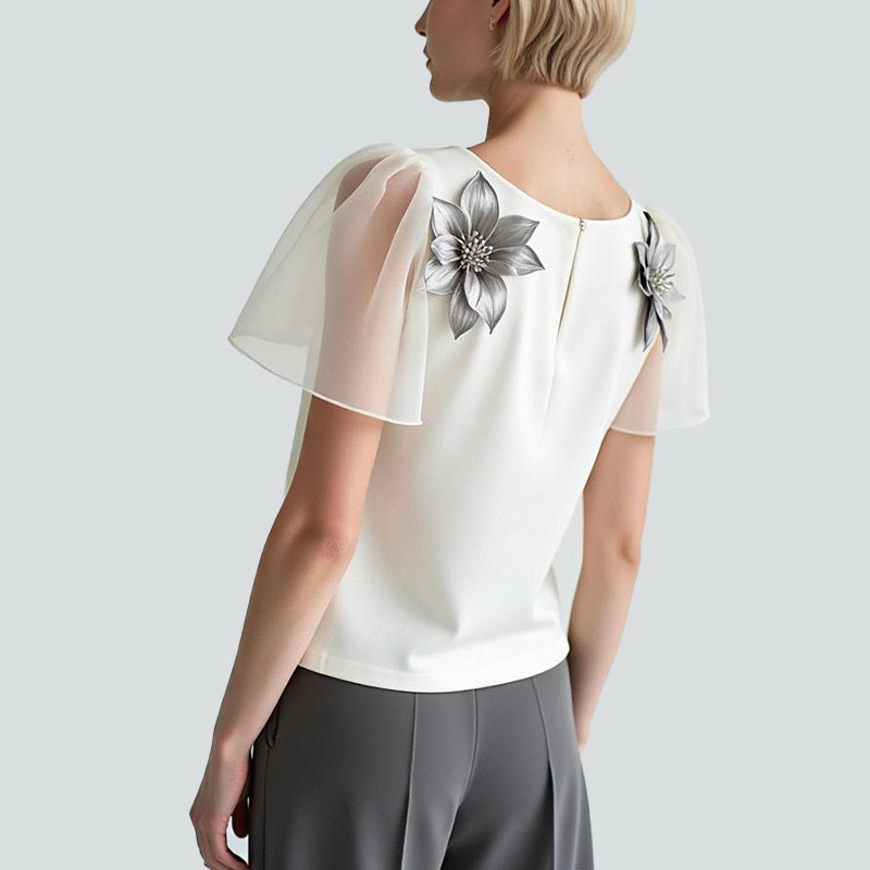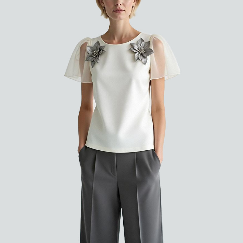 Cute tops for women in spring and summer, floral embroidery, elegant going out tops.
