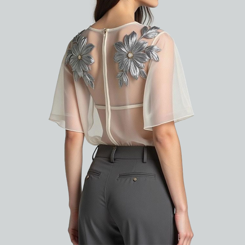 Cute tops for women in spring and summer, floral embroidery, elegant going out tops.
