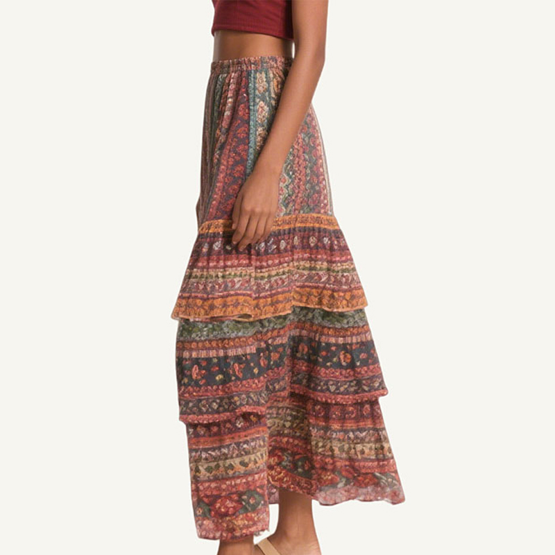 The maxi skirt has an elastic waist design and a loose cut to ensure a comfortable fit.