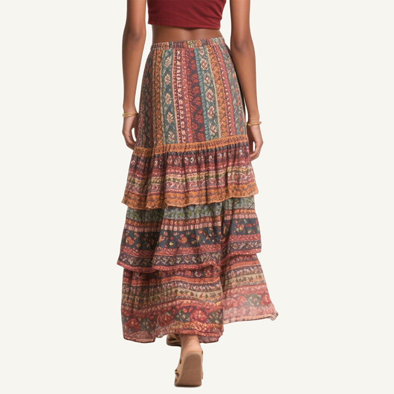 The fabric of the maxi skirt is 75% rayon 25% nylon, and the lining is 100% polyester. This light and soft material keeps you cool and comfortable.