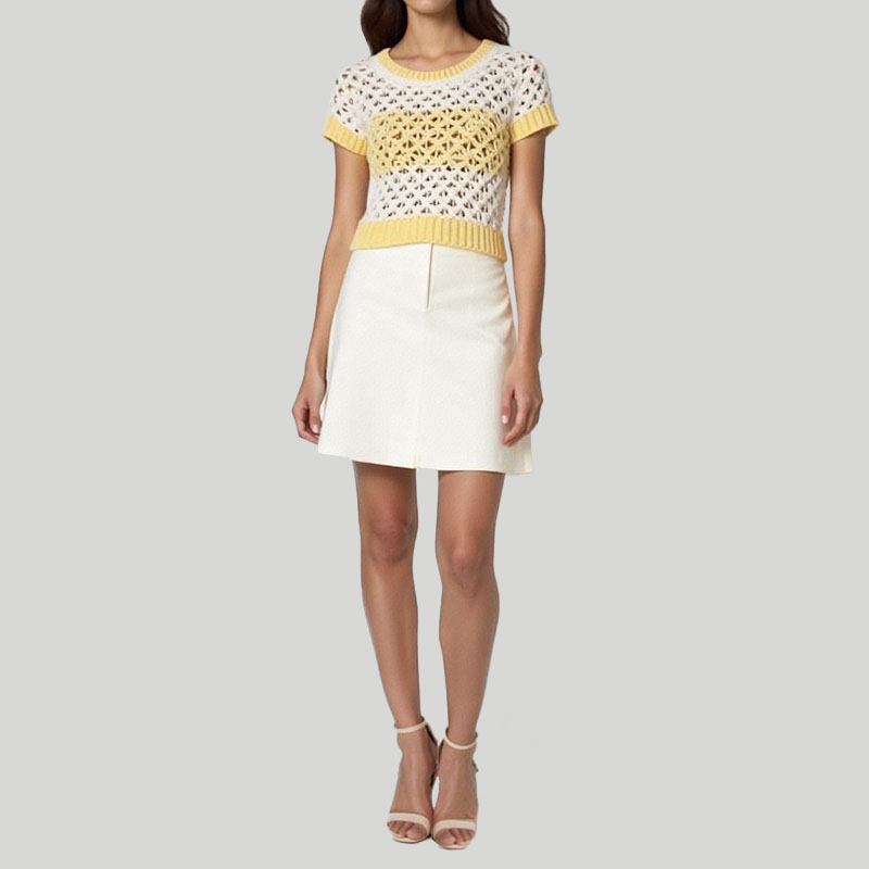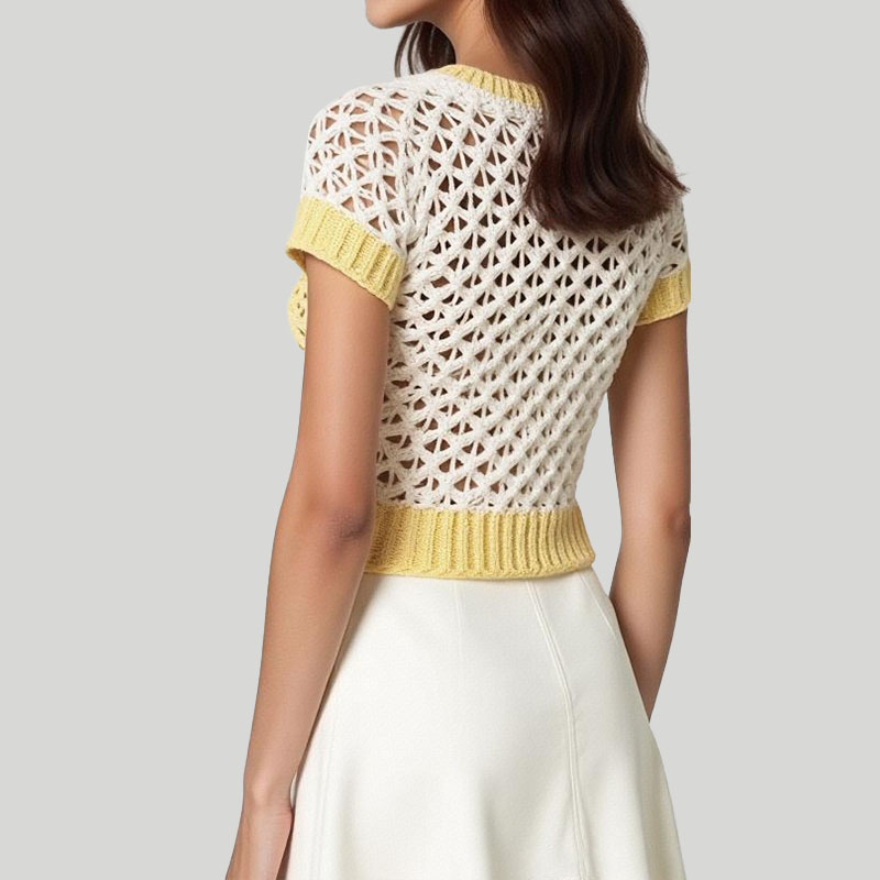 This women’s knitted short-sleeved top is the perfect combination of fashion and practicality with its exquisite design and comfortable material.