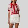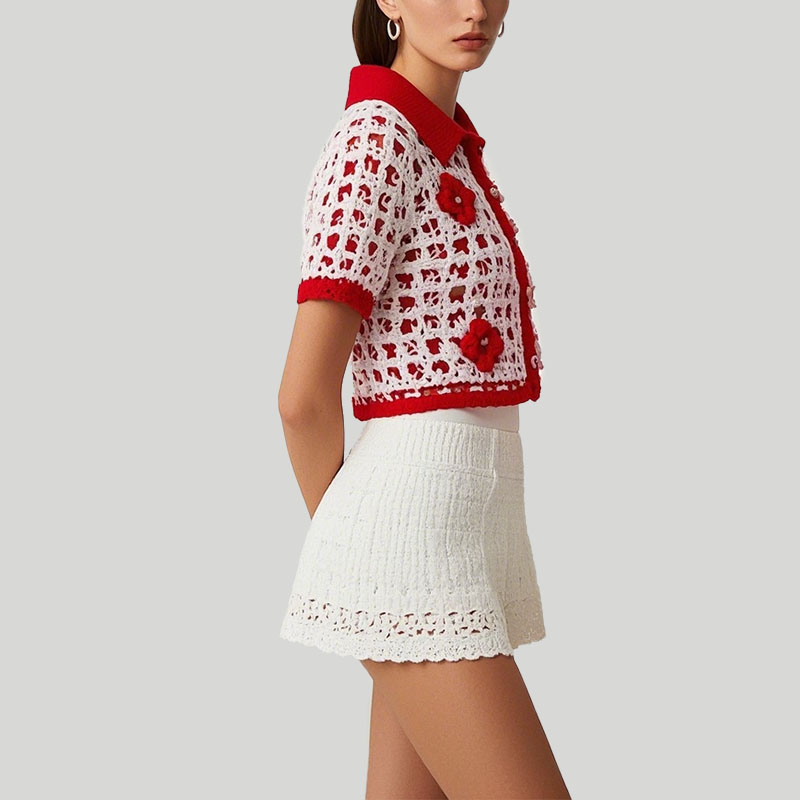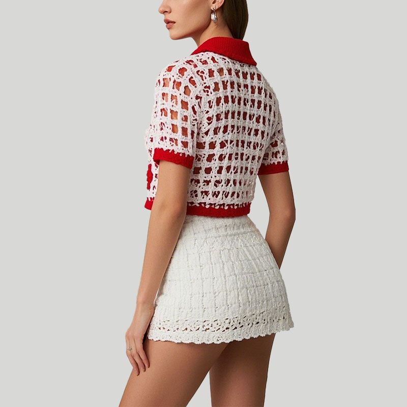 This women’s knitted short-sleeved top is the perfect combination of fashion and practicality with its exquisite design and comfortable material.