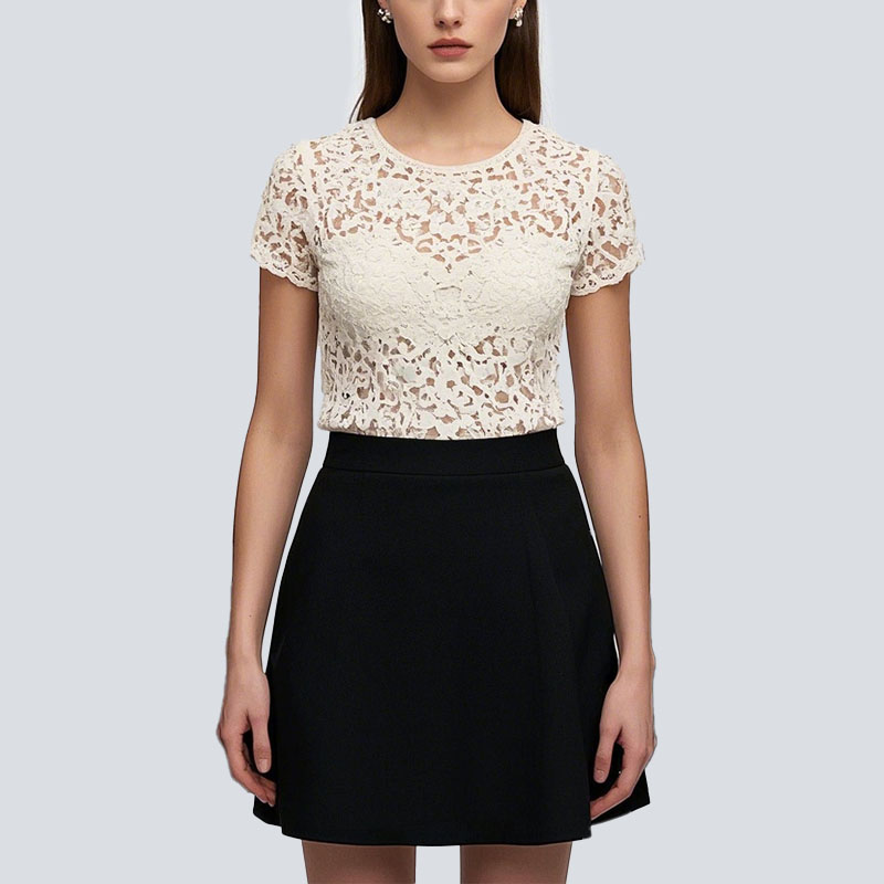 Women’s Lace See-Through Embroidered Crop Top