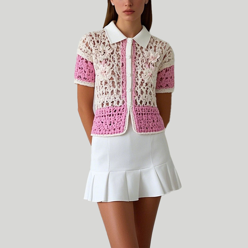 This women’s knitted short-sleeved top is the perfect combination of fashion and practicality with its exquisite design and comfortable material.