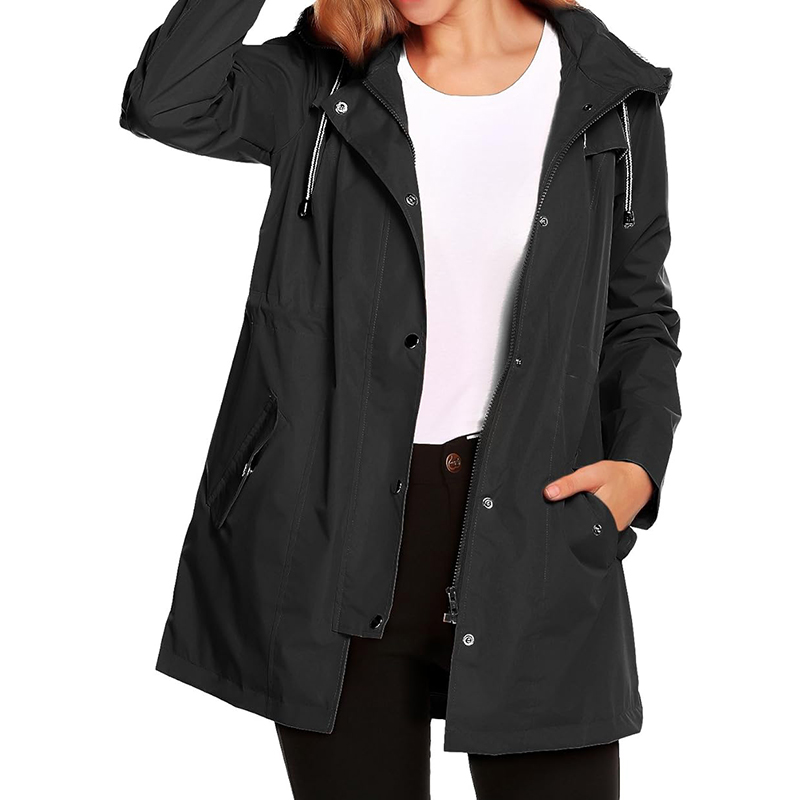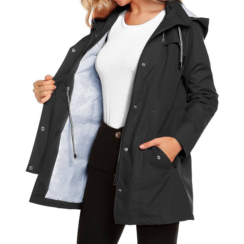 Design: Adopts multiple pockets, waterproof zippers, buttons, hood, elastic waist, long design. This is a practical sports windbreaker. Lightweight and waterproof, easy to deal with rainy weather, suitable for all seasons.