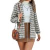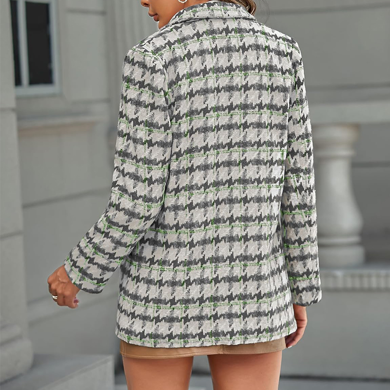 - It adopts classic plaid, lapel, V-neck, long sleeves, two practical pockets, and front placket. The jacket adopts classic plaid pattern, adding fashion and retro atmosphere.