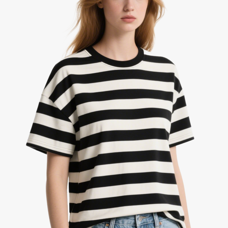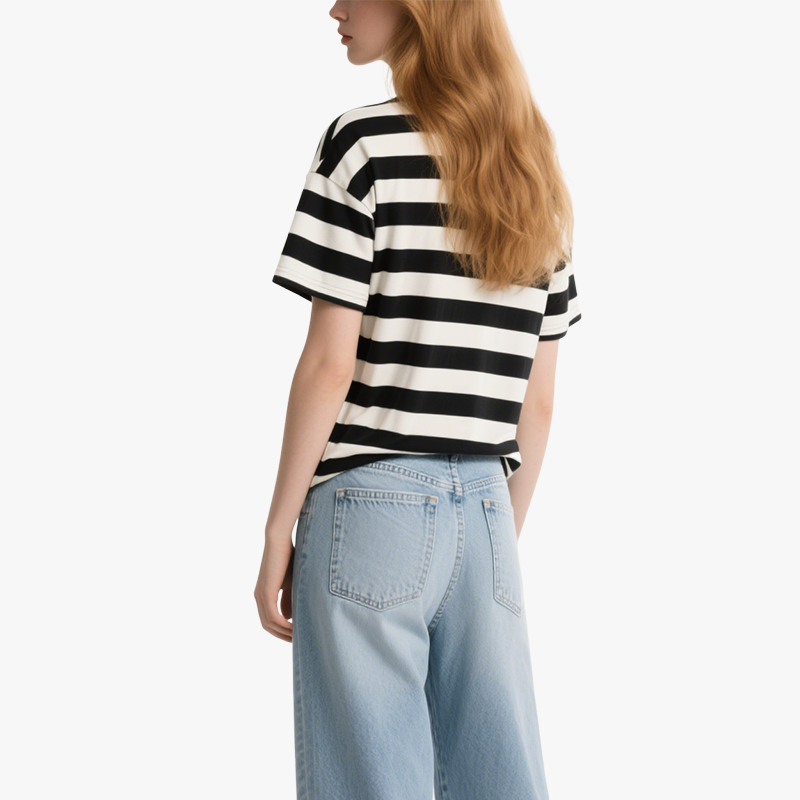 Women’s Loose Black and White Striped Short-Sleeved T-Shirt