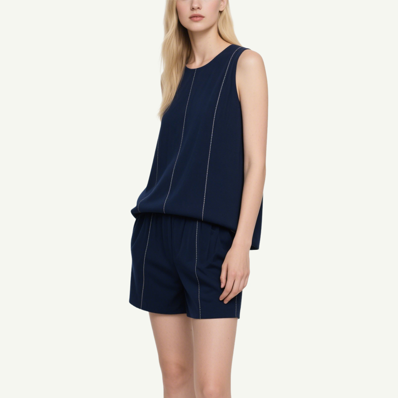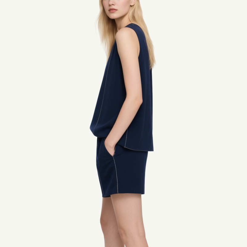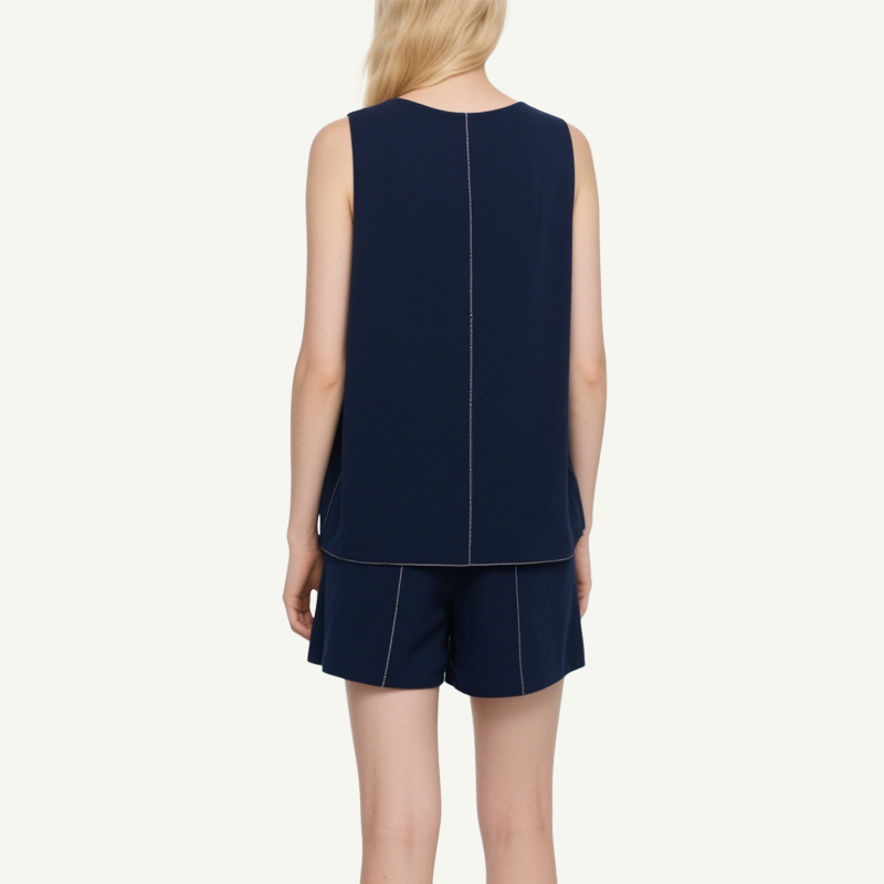 Modern Details: Contrast white stitching adds a subtle touch of sophistication to both the top and shorts.