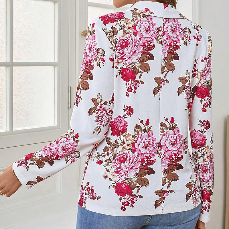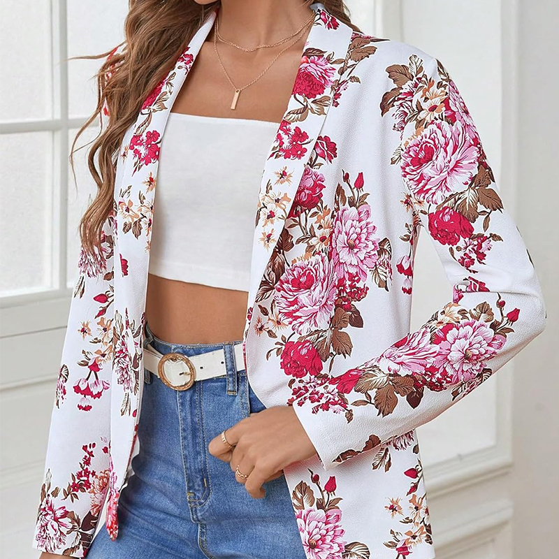 - The suit is crisp and stylish, and the wearing temperament is elegant. The printed design adds a romantic and sweet visual effect, making the jacket more fashionable and feminine. The jacket incorporates casual elements, making the suit formal and suitable for daily casual wear.