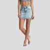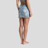 The women’s denim skirt is made of stretch denim, which is both comfortable and durable. The quality of the fabric ensures a pleasant touch while being stretchy enough to accommodate a variety of body shapes.