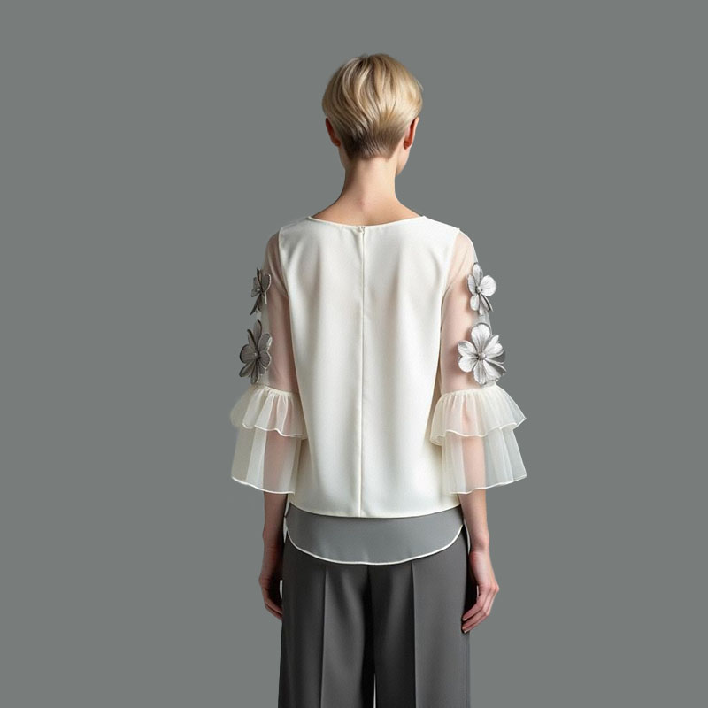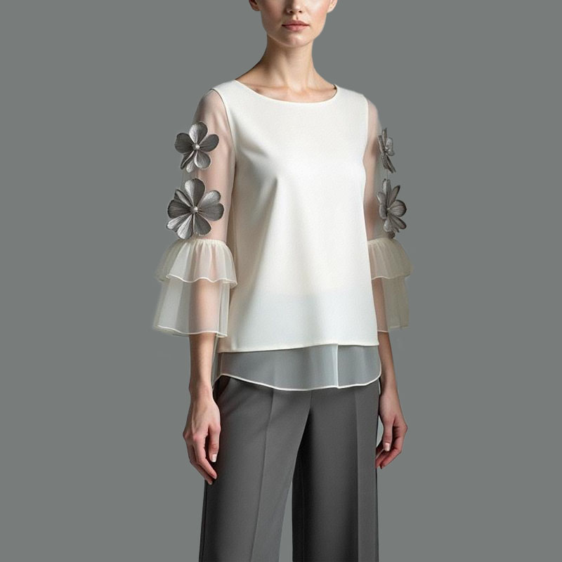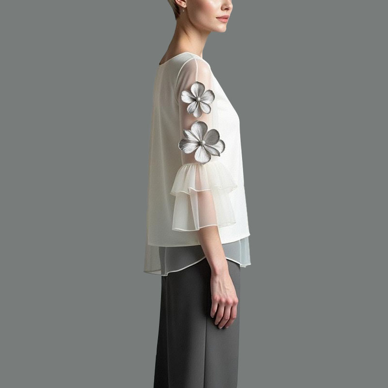 Cute tops for women in spring and summer, floral embroidery, elegant going out tops.