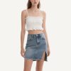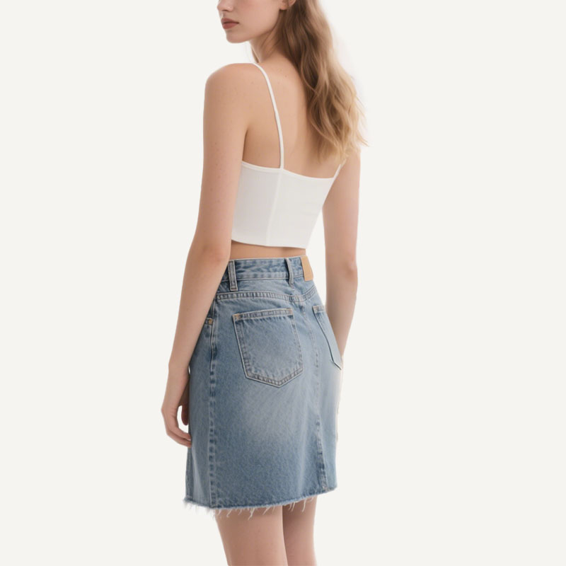 The design of the mini denim skirt not only elongates your legs, but also highlights your curves. This women’s skirt features a slit design, which adds visual interest and elegance.