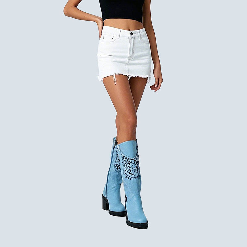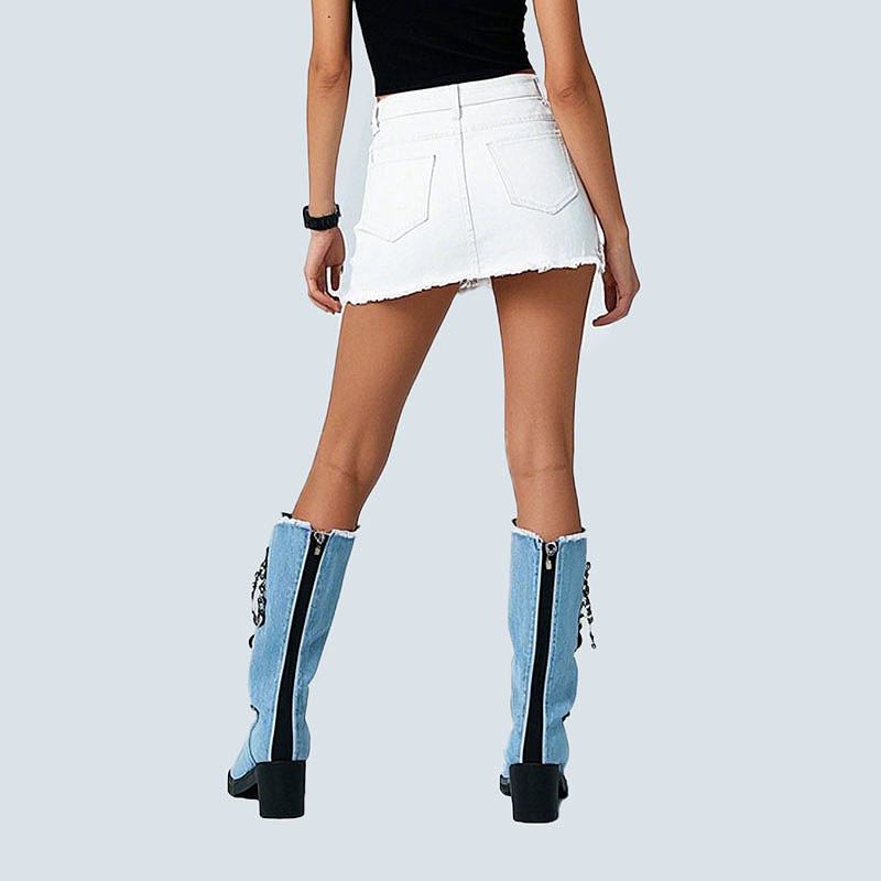Women’s Solid Color Fashionable Short Length Denim Skirt
