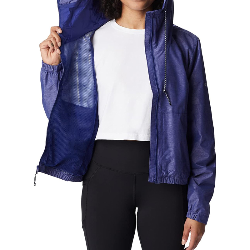 The jacket features a drawstring hood, full zipper and mesh lining. The jacket is lined with soft fine mesh polyester to keep you comfortable in wet weather without feeling wet. The jacket is suitable for a variety of outdoor sports, providing additional protection and shelter when needed, and adapting to different weather and environmental conditions.