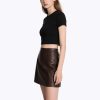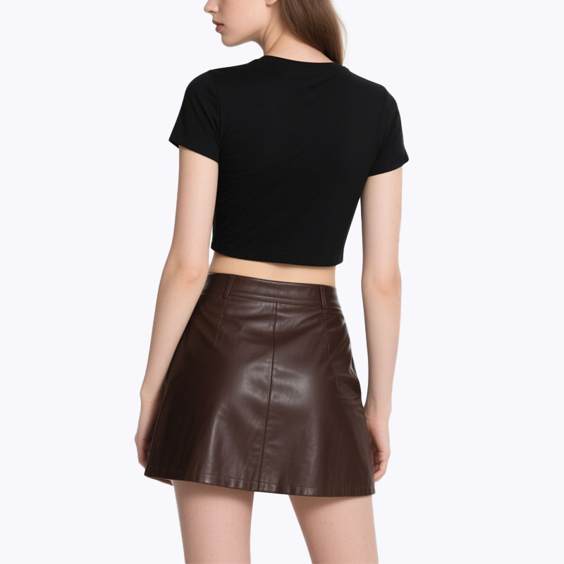 Add edge to your wardrobe with this sleek A-line mini skirt in rich espresso brown. Designed with a smooth faux leather finish and subtle seam detailing for a clean, structured silhouette.