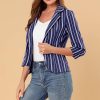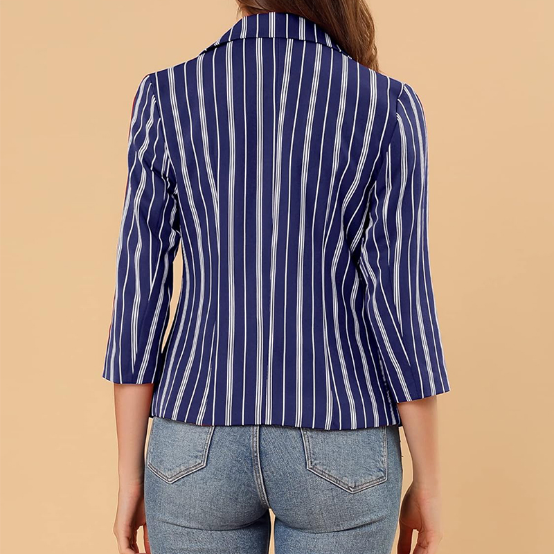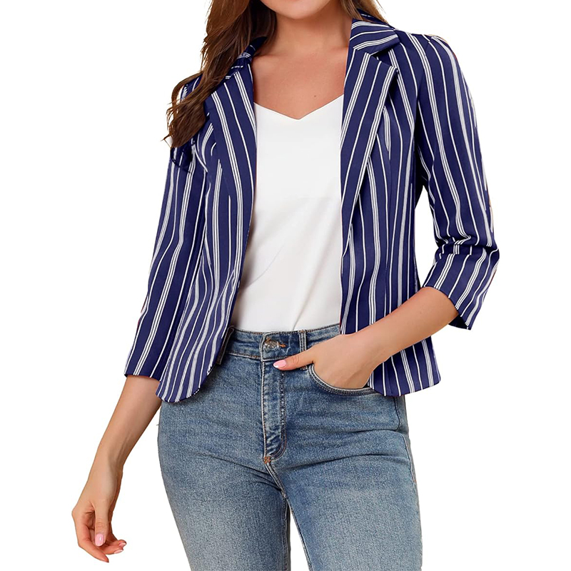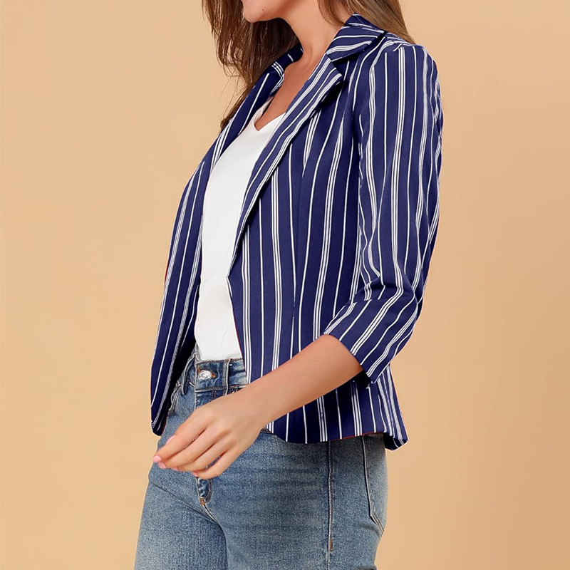 - The suit jacket adopts thick stripes, notched lapels, 3/4 sleeves, and short design, which shows the waistline when worn. The classic design is easy to match with different styles of clothing and accessories, which enhances the overall formality and professionalism.