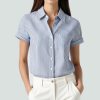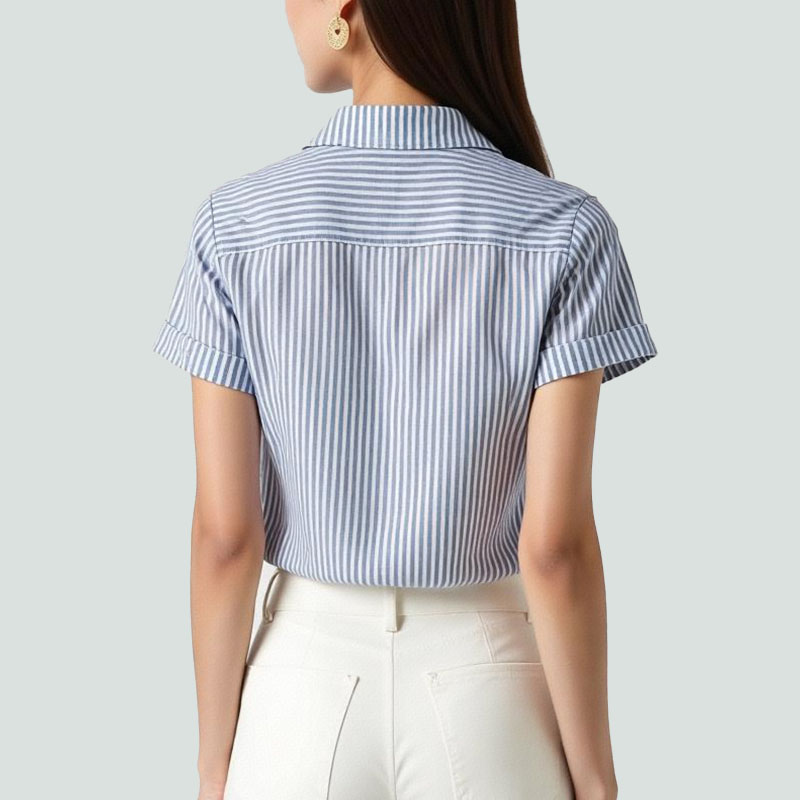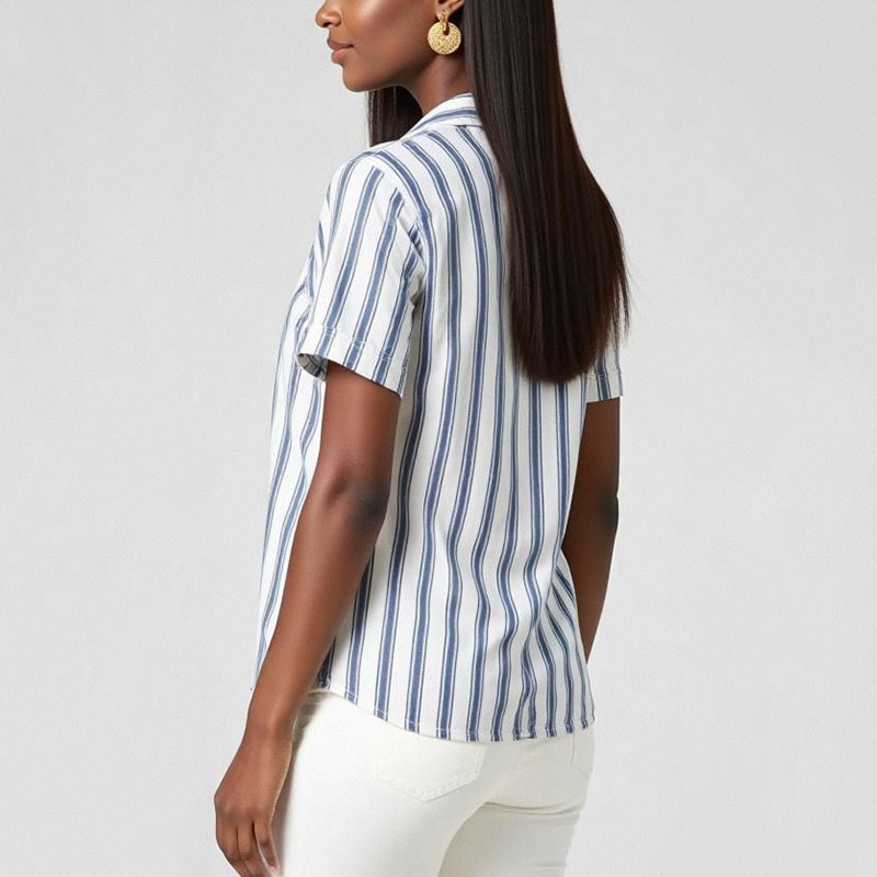 Moderate hem length, lapel collar, short sleeves. The women’s shirt is comfortable and beautiful, while the design is simple and fashionable.