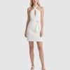 Designed to flatter your curves, the dress features a hip-hugging silhouette that flatters your figure. Medium stretch ensures a comfortable yet stylish fit, while the hidden back zipper provides a seamless finish.