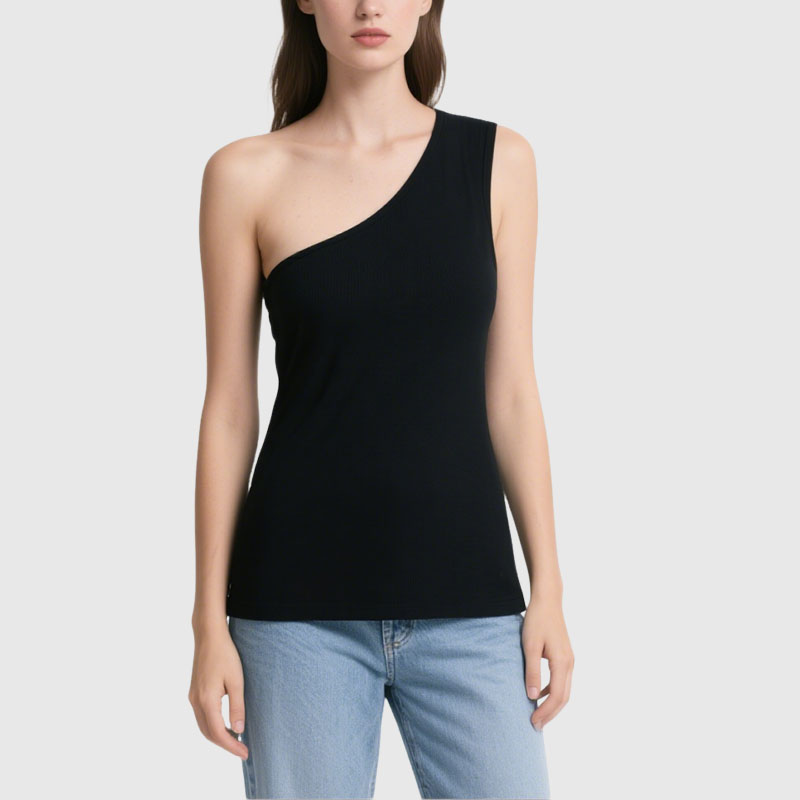 A must-have for summer fashion, this tailored one-shoulder top pairs perfectly with overalls, shorts, jeans, skirts or yoga pants.
