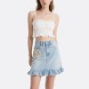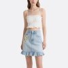 The design of the mini denim skirt not only elongates your legs, but also highlights your curves. This women’s skirt features a slit design, which adds visual interest and elegance.
