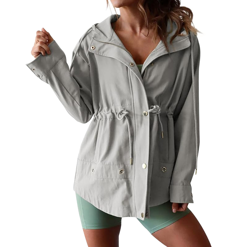 Design: This women’s hooded jacket, with adjustable waist, drawstring, full zipper and snap closure, windbreaker jacket with hood, front pockets, long sleeves, V-neck, mid-length version, suitable for all seasons.